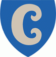 I blått fält ett eldstålsliknande C av silver.