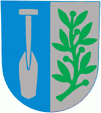 Sköld kluven i blått, vari en stolpvis ställd styråra av silver, samt i silver, vari en grön lagerkvist. I enlighet med stadens 1793 stadfästa vapen. Styråran syftar på den ypperliga naturliga hamnplats som har motiverat stadens uppkomst. Lagerkvisten tor