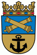 Skölden delad, övre fältet blått, vari två korslagda kanoner av guld, det nedre av guld, vari ett svart ankare. Fästnings- och sjöfartssymbolerna härleds ur det av Konung Adolf Fredrik 22.6.1756 fastställda sigillet för Lovisa stad.